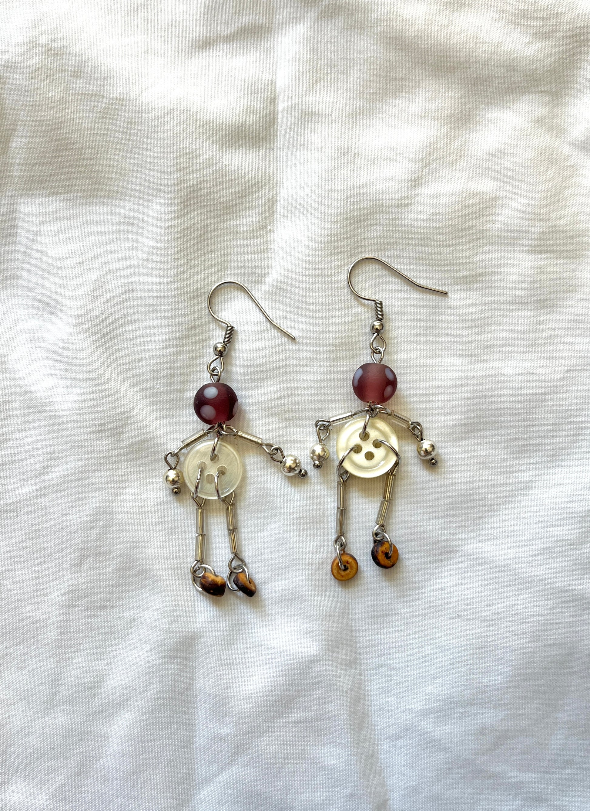 glass beads, buttons, stainless steel findings